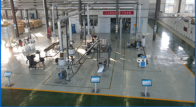 研發中心生產基地坐落于濟寧市鄒城市太平煤礦,生產車間面積6000平方米,配備錐形雙螺桿混煉擠出線、雙 桿雙階混煉擠出線等數條全自動化生產線,可實現原料輸送、稱量、上料、混合、篩選、包裝等系列工序全自動化完 具有工藝先進、產品質量穩定等特點,年產石墨烯高分子復合材料萬余噸。 成, 另外,生產基地還配備多套配方研發中試驗證設備,可實現研發中心科技成果高效率產業化。